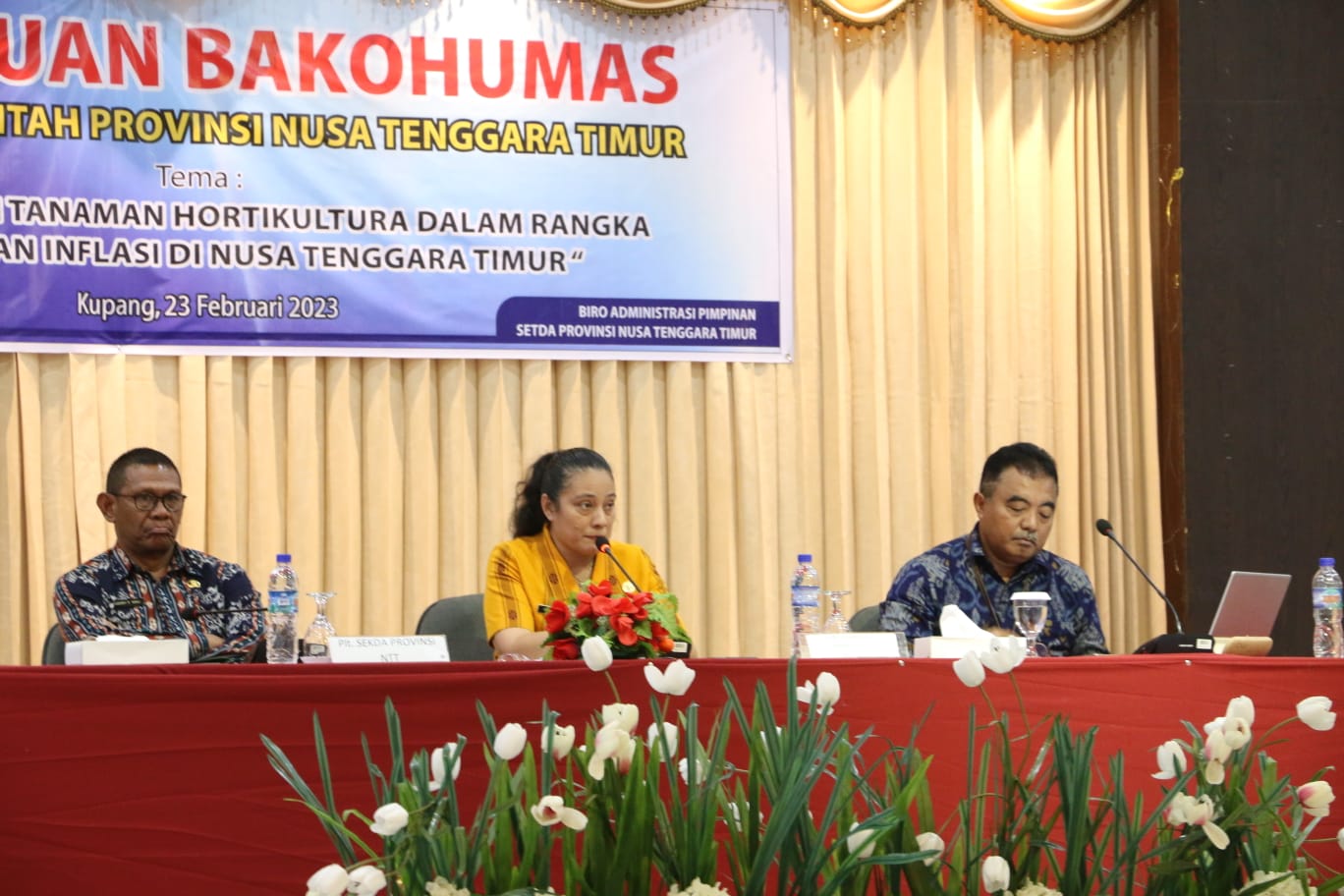 Dalam rangka membangun sinergitas penguatan kapasitas antar lembaga terkhususnya dalam menghadapi dan menyelesaikan masalah inflasi, maka Biro Administrasi Pimpinan Setda Provinsi NTT menyelenggarakan Pertemuan Badan Koordinasi Kehumasan (Bakohumas) I Tahun 2023 dengan tema ‘Pengembangan Tanaman Hortikultura, dalam rangka Pengendalian Inflasi di Nusa Tenggara Timur’. Kegiatan tersebut berlangsung di Aula Hotel Ima Kupang pada Kamis (23/02/2023).