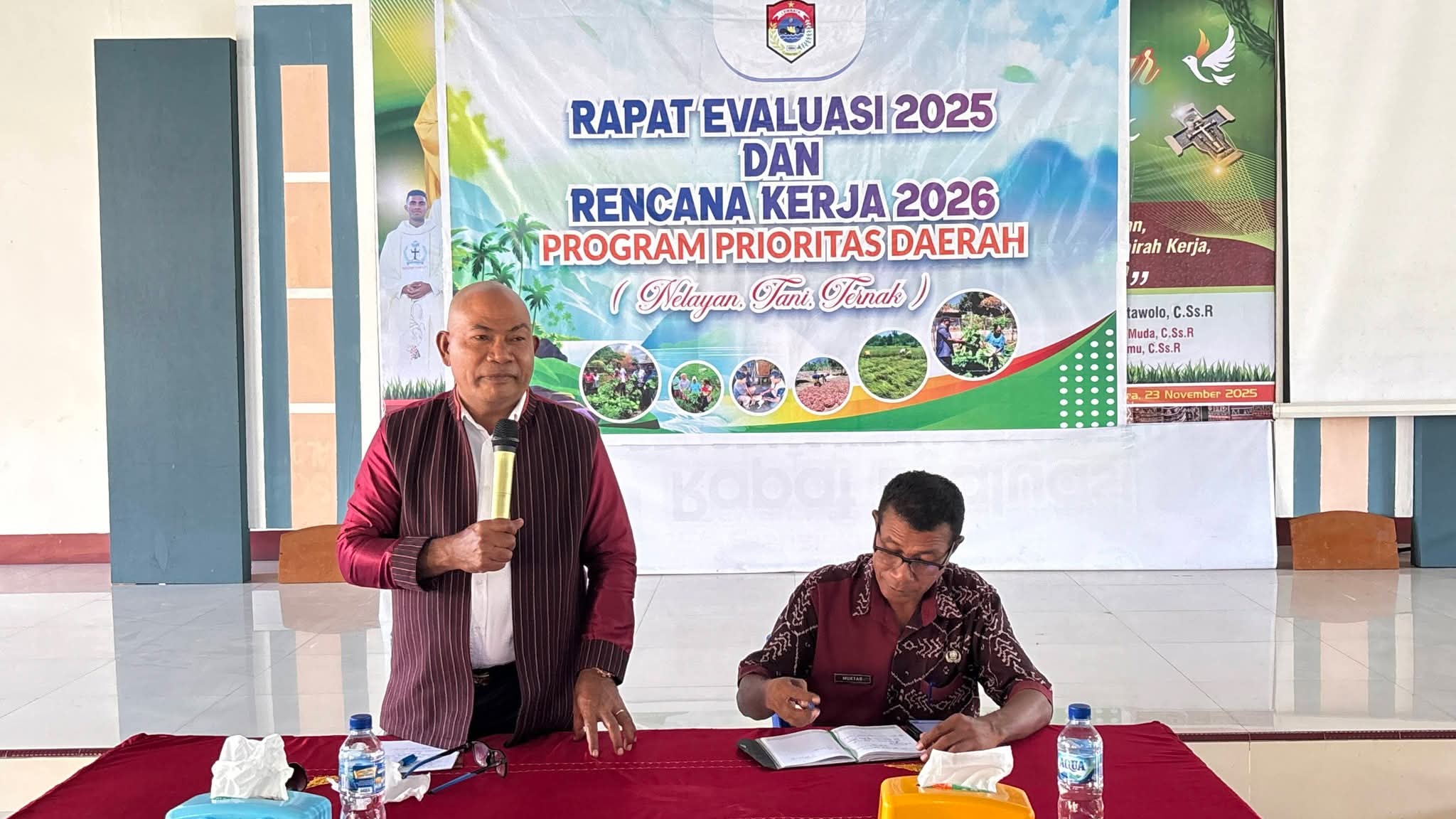 Bupati Lembata, Petrus Kanisius Tuaq, secara resmi membuka Rapat Evaluasi Pelaksanaan Program Prioritas Daerah Tahun 2025 dan Rencana Kerja Tahun 2026 dalam bingkai Nelayan–Tani–Ternak (NTT). Kegiatan ini berlangsung pada Rabu, 18 Desember 2025, bertempat di Aula Gereja Katolik Paroki St. Fransiskus Asisi, Lamahora.