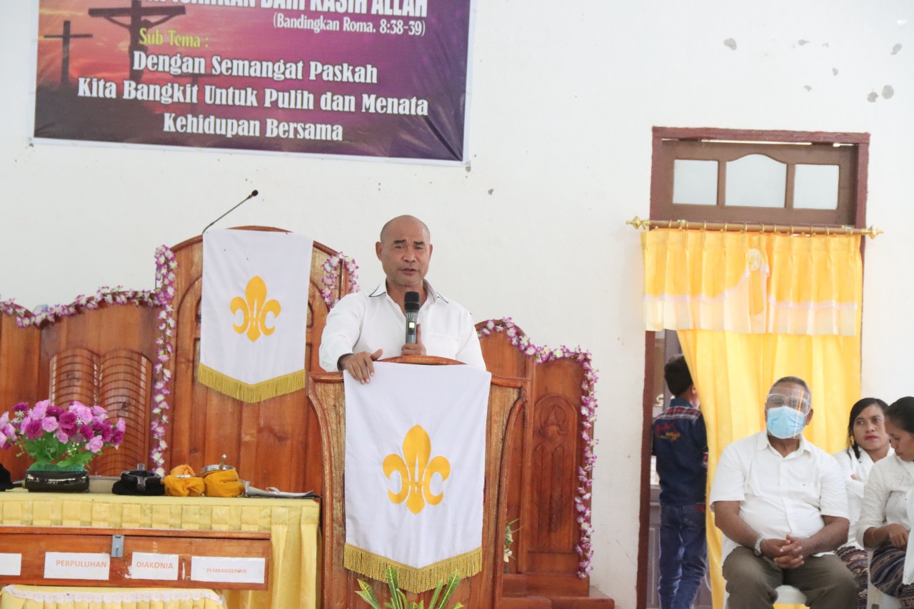 “Dengan keyakinan dan ketaqwan iman kita juga tentunya harus bisa dibuktikan secara konkrit peranan aktif jemaat untuk turut membangun pertanian, peternakan, serta perikanan dengan kolaborasi bersama dengan Pemerintah. Dengan demikian terwujudlah tujuan kita sebagai orang beriman yang telah membantu banyak orang di daerah ini terkhususnya di Kabupaten Kupang,” kata beliau.