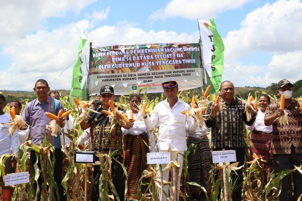 Bertempat di Desa Oenesu Kecamatan Kupang Barat pada Kamis (15/09/2022), dilaksanakan kegiatan Panen Perdana Pembenihan Jagung Hibrida Bima 14 Batara Seluas 8 Ha. Kegiatan panen secara simbolis tersebut dilakukan oleh Gubernur NTT Viktor Bungtilu Laiskodat dan Wakil Bupati Kupang Jerry Manafe bersama Pimpinan OPD Lingkup Pemprov NTT dan Kabupaten Kupang.