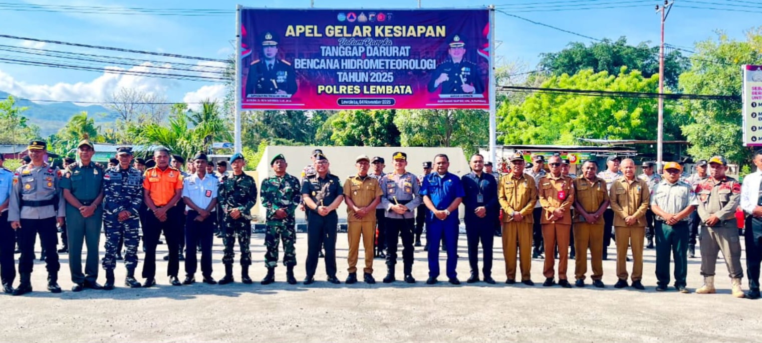 Kesiapsiagaan menghadapi potensi bencana di wilayah Kabupaten Lembata ini, Wakil Bupati Lembata, H. Muhamad Nasir, bersama Ketua DPRD dan unsur Forkopimda lainnya menghadiri apel gabungan Tanggap Darurat Bencana Hidrometeorologi yang berlangsung di halaman depan Mapolres Lembata Selasa, 4 November 2025.