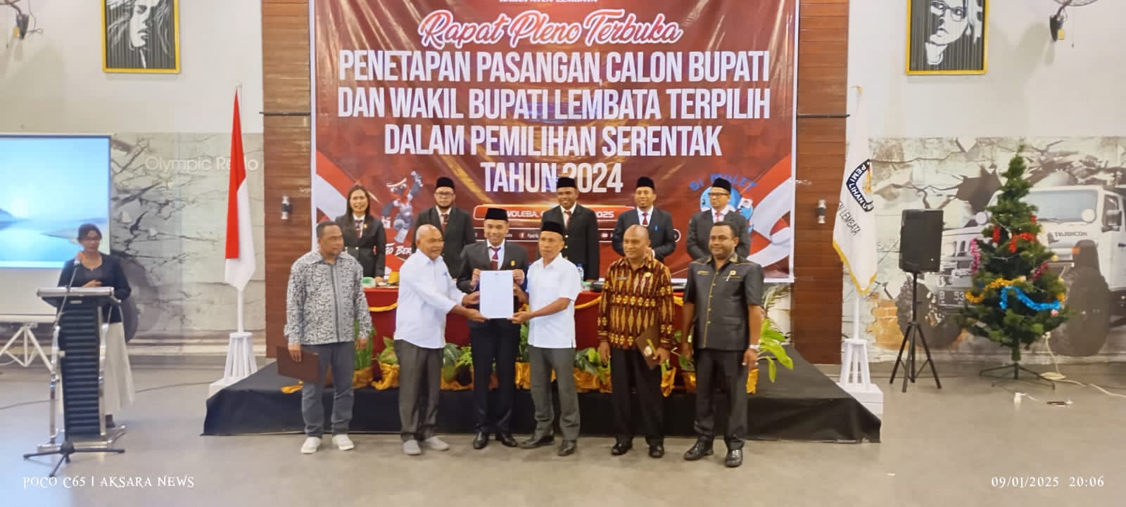 Tibalah saat yang dinanti masyarakat kabupaten Lembata, Selasa 09 Januari 2025 tepatnya di Olympic Ballroom Komisi Pemilihan Umum (KPU) Lembata menggelar Rapat Pleno Terbuka. Rapat pleno terbuka yang gelar KPU Lembata ini untuk menetapkan pasangan Calon Bupati dan Wakil Bupati terpilih Kabupaten Lembata dari hasil perolehan suara Pemilihan Kepala Daerah (Pilkada) 27 November 2024 beberapa ahad yang lalu.