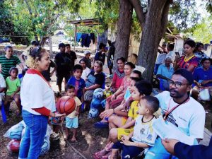 Tak hanya memberi bantuan, Tim ini juga melakukan aksi Trauma Healing kepada anak-anak agar mengembalikan psikologi bagi korban erupsi Gunung Lewotobi Laki-laki.