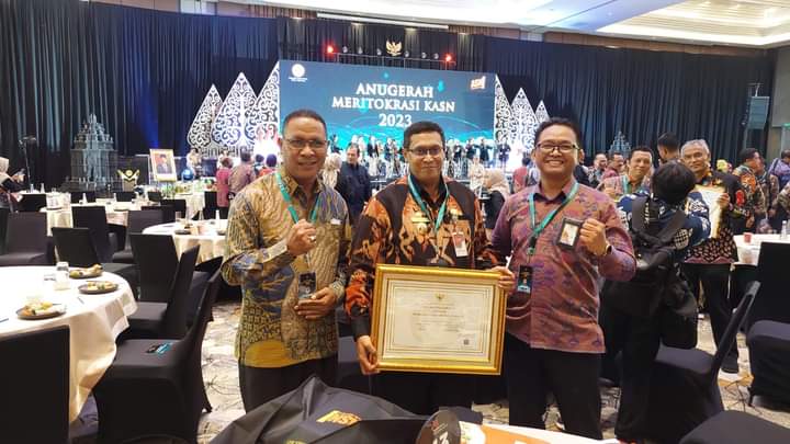 Penghargaan Anugerah Meritokrasi 2023 dari Komisi Aparatur Sipil Negara (KASN) ini diserahkan langsung oleh Ketua Komisi Aparatur Sipil Negara (KASN), Prof. Agus Pramusinto kepada Penjabat Bupati Kabupaten Lembata Drs. Matheos Tan, M.M, yang didampingi Kepala Badan Kepegawaian dan Pengembangan Sumber Daya (BKPSDM), Said Kopong, di Kraton Grand Ballroom Yogyakarta Marriot Hotel, Kamis (7/12/2023).