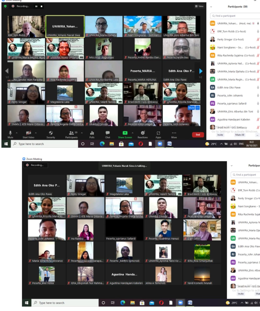 Kegitan ini dimulai dengan sapaan pembukaan oleh Dr. Elvis Albertus bin Toni, S.Pd, MA selaku Ketua Program Studi Pendidikan Bahasa Inggris Unwira , lalu diikuti oleh sapaan dari Dr. Bradley Horn selaku Direktur RELO, dan Prof. Thomas Robb selaku Ketua ERF.