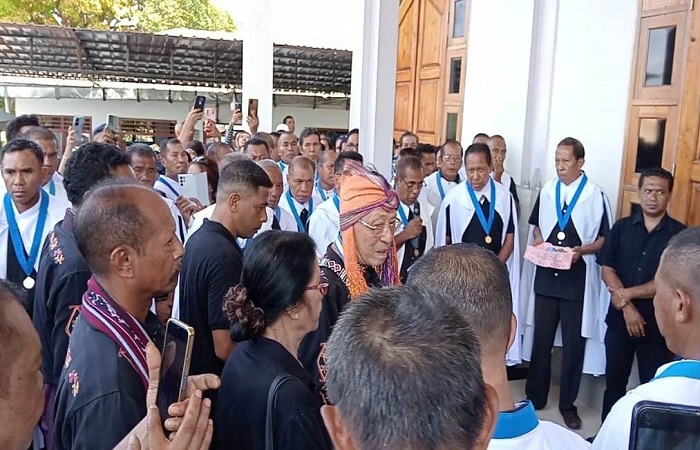 Napak terlihat keturunan Raja Larantuka, Don Andreas Martinus, DVG melantunkan beberapa kalimat dalam bahasa Lamaholot guna mohon restu dari para leluhur, dan kemudian membukakan pintu Kapela Tuan Ma sebagai tanda cium Tuan Ma sudah bisa dilakukan. *