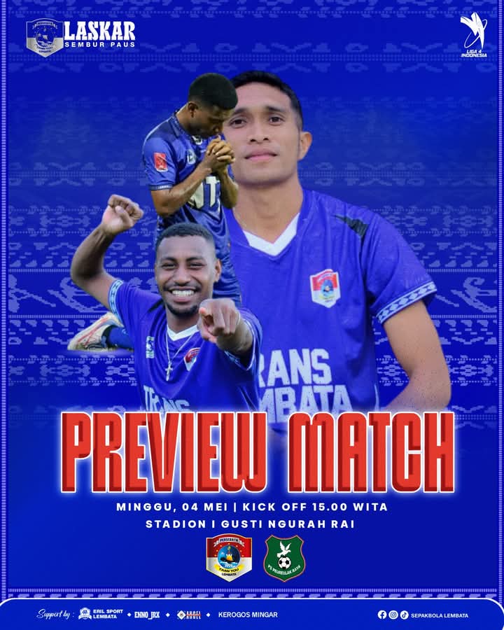 Lagi -lagi tim Persebata Lembata akan siap dihadapkan melakoni match terakhir 32 besar liga 4 seri Nasional melawan PS Peureulak Asal Aceh hari ini Minggu 4 Mei 2025. Pukul 15-00. Secara statistik Persebata Lembata memang lebih berpeluang lolos ke babak 16 Besar Liga 4 Nasional, Karena Persebata telah mengantongi 6 poin hasil dari dua kemenangan dalam dua pertandingan pada babak 32 besar ini. Namun harus diakui bahwa sepakbola tetaplah sepakbola, lalu yang menjadi pertanyaan apakah ada kejutan disetiap sepakannya Persebata Lembata,?” Berikut nukilan tentang perjuangan para laskar Sembur Paus di tanah Seribu Dewa.