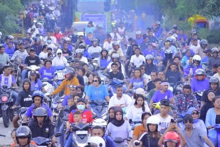 Suasana semakin meriah dengan konvoi kendaraan dan iring-iringan musik dan lagu daerah Lembata yang menyemangati suasana.